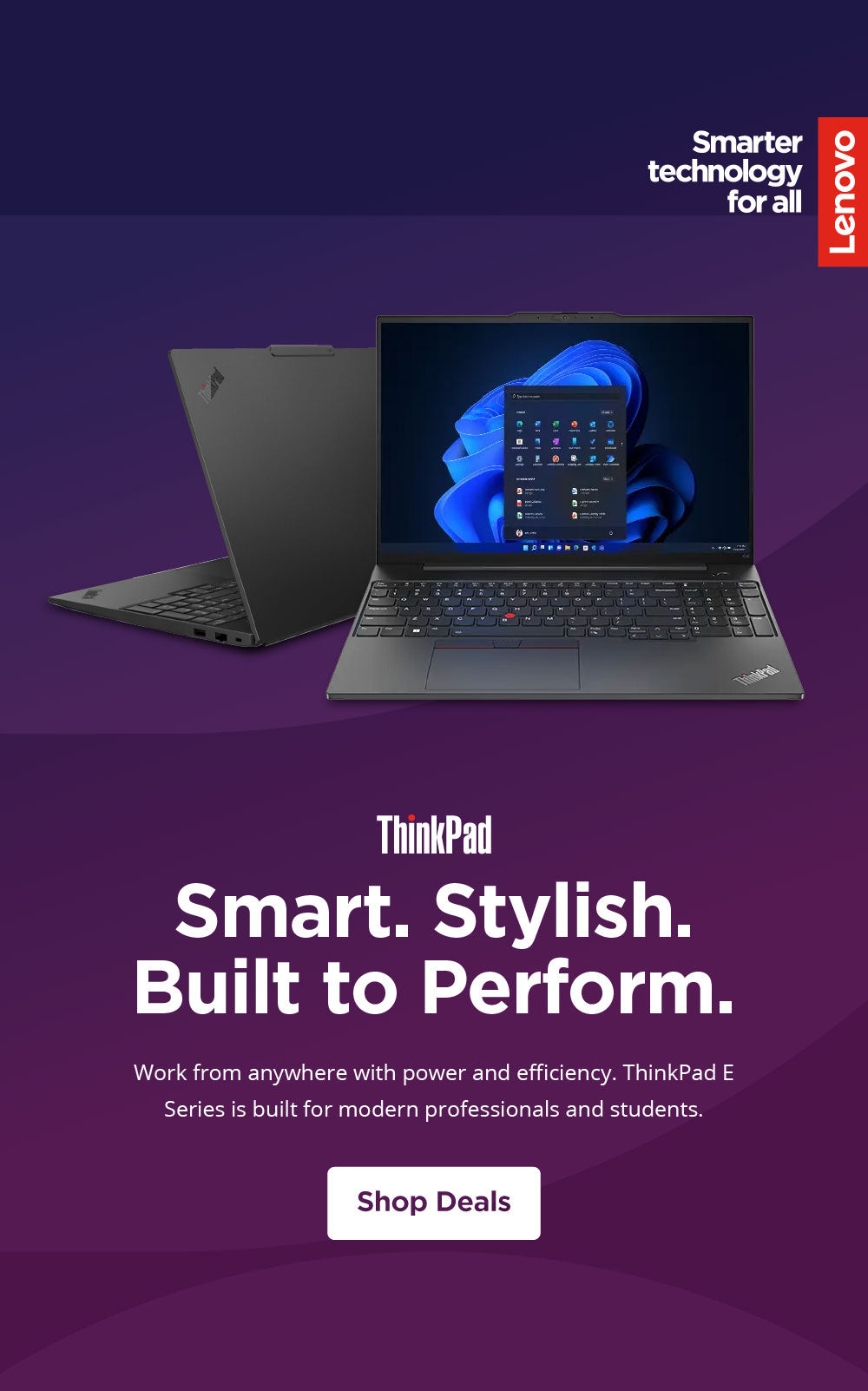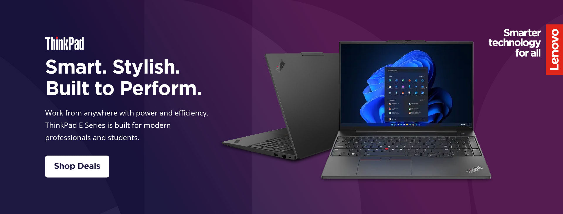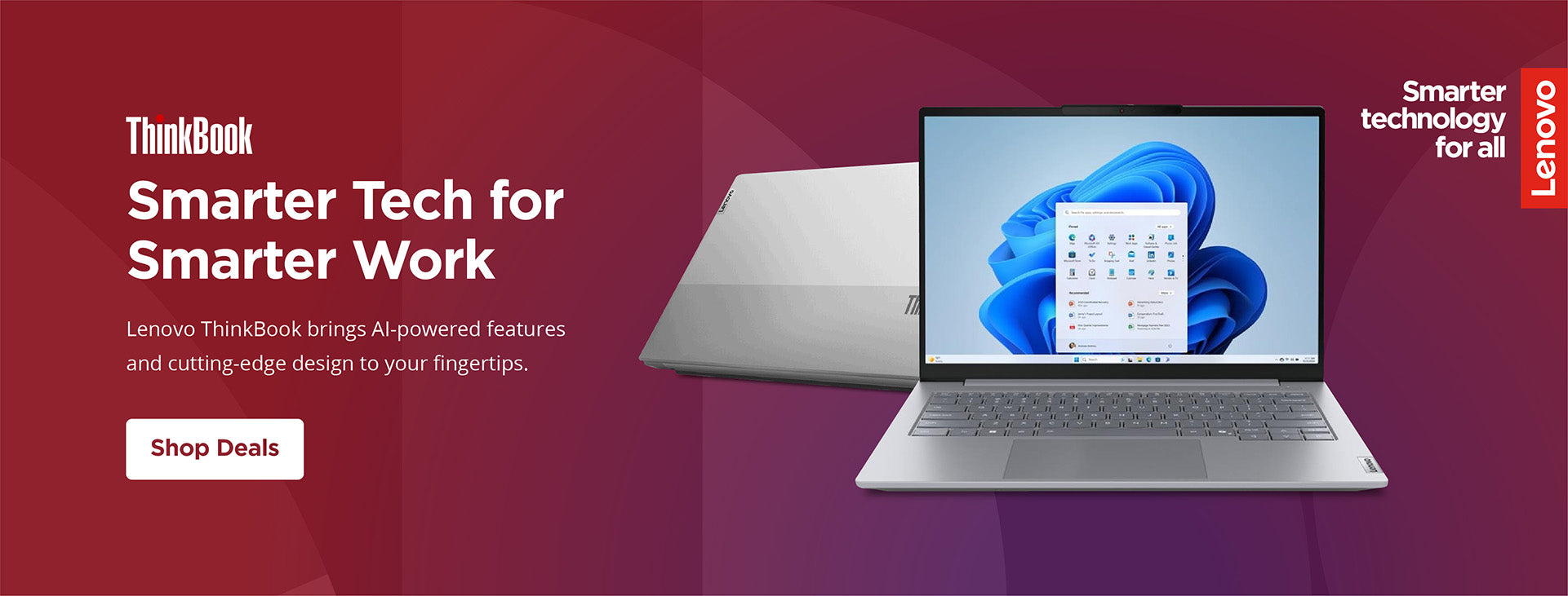 Lightweight and stylish, Lenovo ThinkBooks offer seamless security and efficiencies. Features like Modern Standby and Smart Power On help to boost performance and improve productivity. Plus voice control, dual-screen designs, and enhanced audio put technology to work for your business. Includes SMB-grade support offerings.